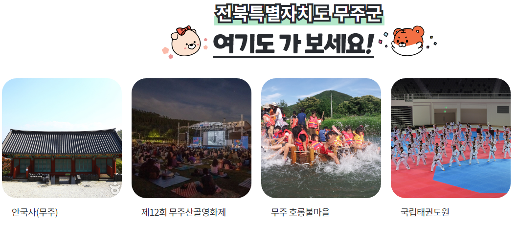 전북 무주군뿐만 아니라 대한민국 여행지에서 각각 지역에서 할인 제공되니 꼭 신청하시길 추천드려요.