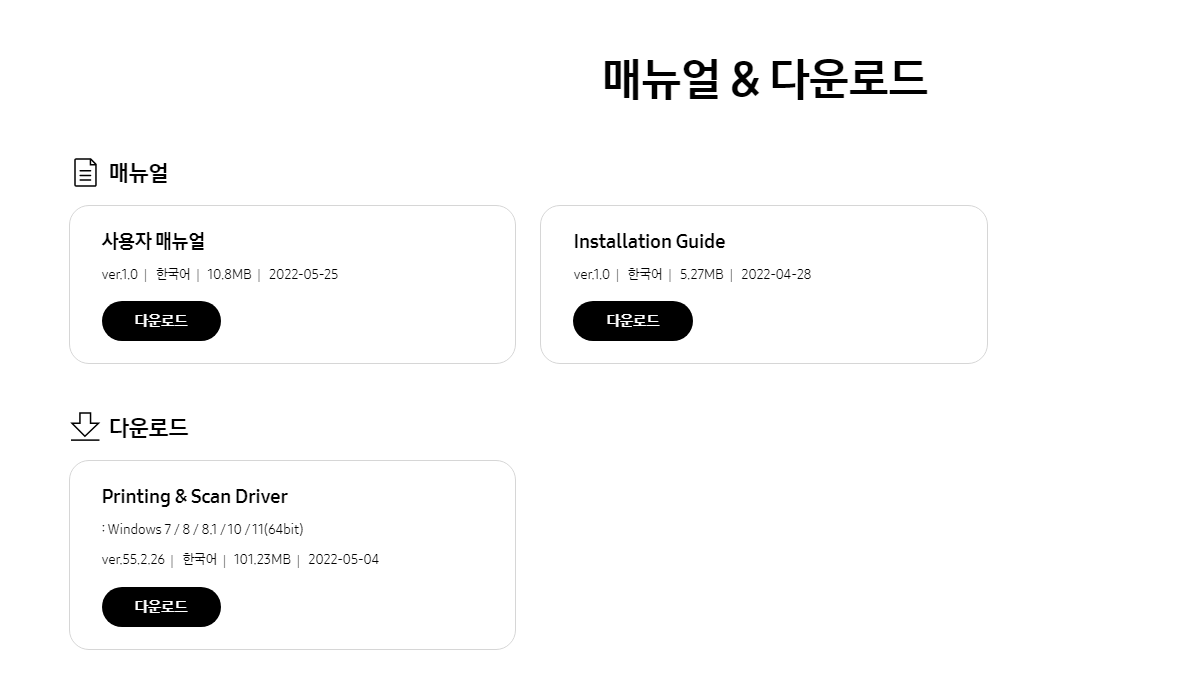 제일 먼저 처음에 해야할 일은 삼성 사이트에서 드라이버를 다운 받아야 합니다.