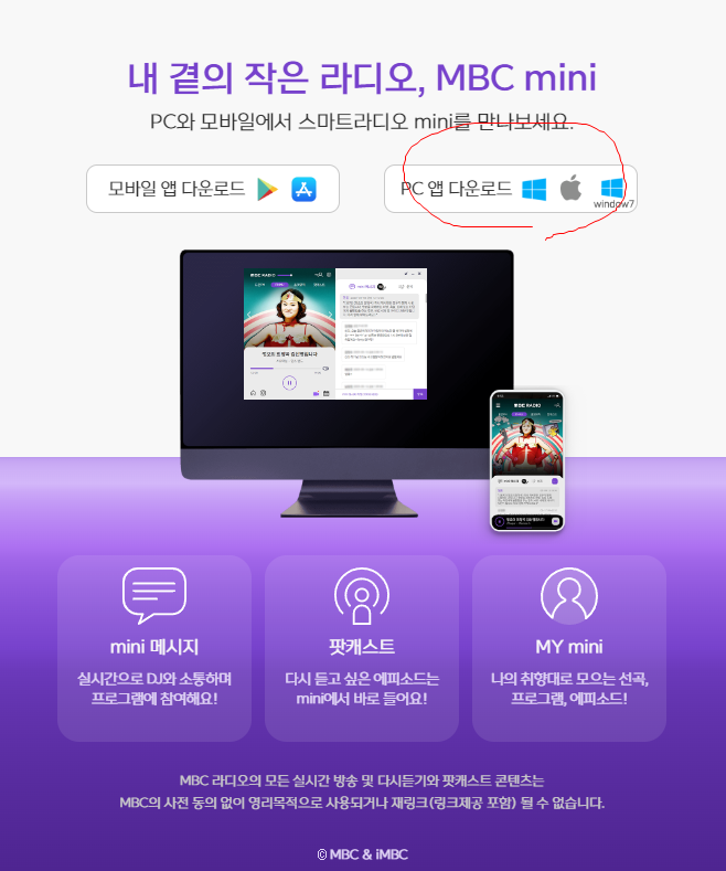 mbc미니 라디오는 pc나 휴대폰에서도 실시간으로 라디오를
